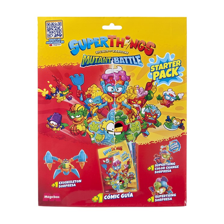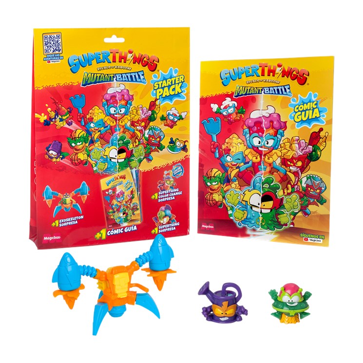 Starter Pack includes 1 Comic book guide with the new story, as well as 2 SuperThings (one with Colour Change effect) and an Exoskeleton.