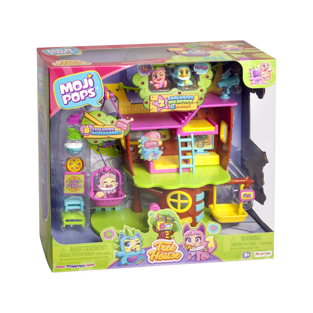 Dzień w domku na drzewie to wspaniała przygoda! Twoje MojiPops mogą urządzić piknik, obejrzeć film jedząc popcorn, pohuśtać się, popatrzeć na gwiazdy przez teleskop… A gdy zapadnie wieczór, czekają na nie wygodne łóżeczka. Zdecyduj, jakie emocje przeżywają MojiPops, obracaj ich buzie lub wymieniaj minki z innymi MojiPops! Jest tyle zabawnych rzeczy do zrobienia!