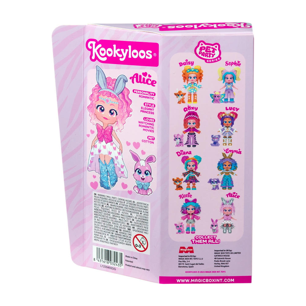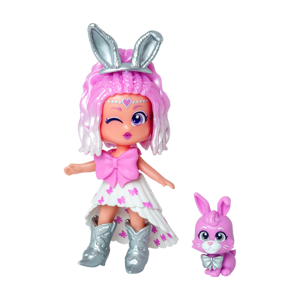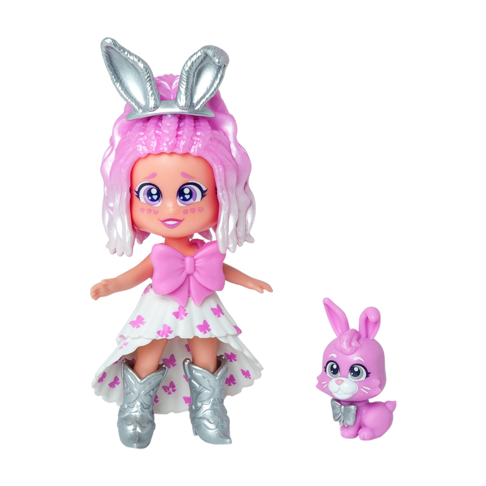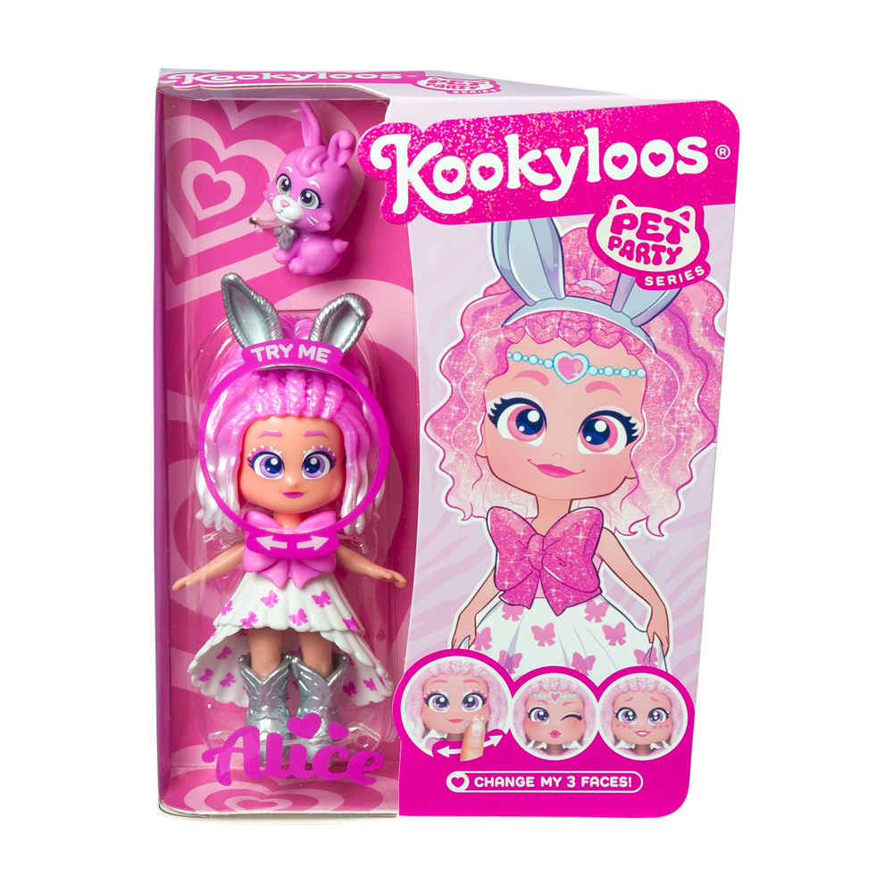 Muñeca coleccionable Alice con un conejo de mascota. Tiene su propia ropa y accesorios de moda ¡y tres caras diferentes!