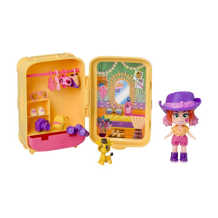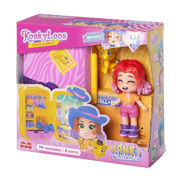 Maleta para muñecas con más de 14 accesorios de moda junto con la muñeca exclusiva Jane. ¡Descubre sus tres expresiones divertidas!