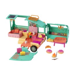 Caravana con muchos accesorios diferentes junto con la muñeca exclusiva Mia y su mascota exclusiva. ¡Guárdalo todo dentro y llévatelo para jugar donde quieras!