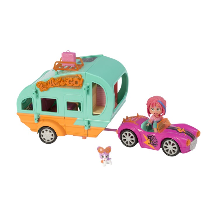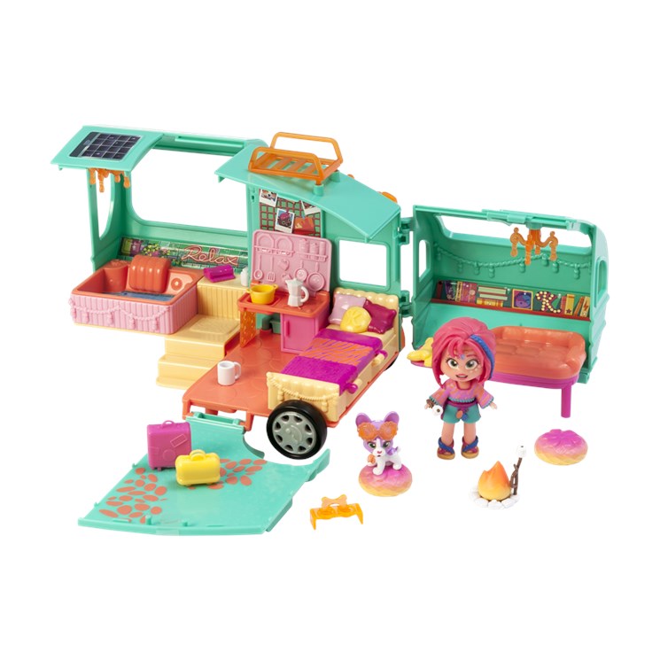 Caravana con muchos accesorios diferentes junto con la muñeca exclusiva Mia y su mascota exclusiva. ¡Guárdalo todo dentro y llévatelo para jugar donde quieras!