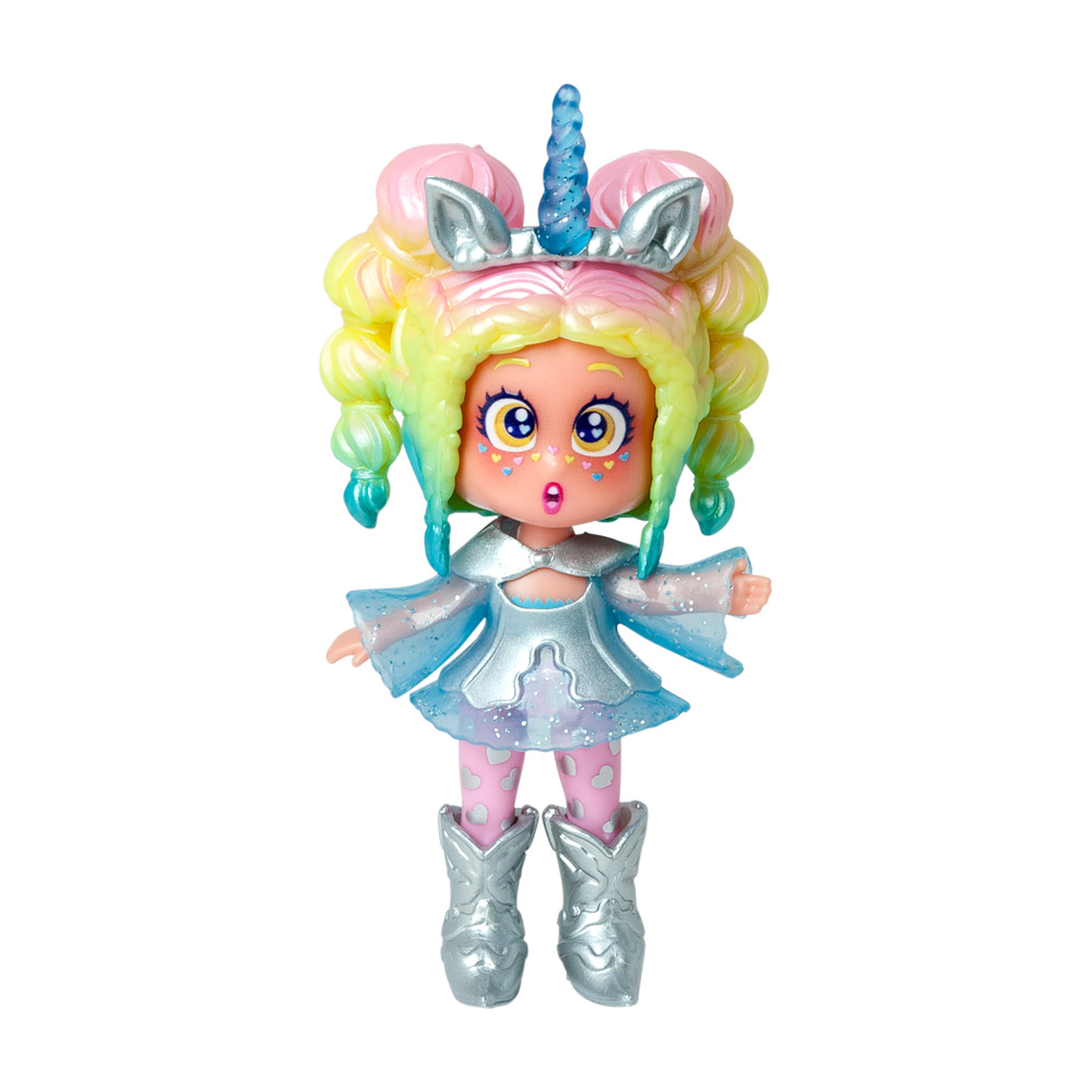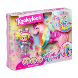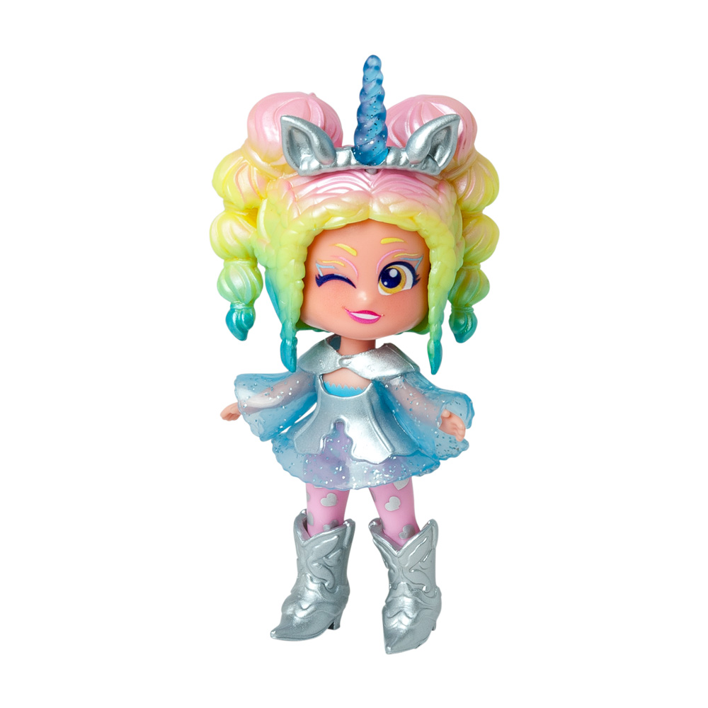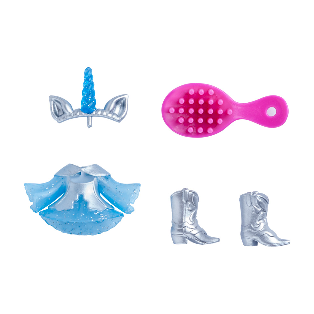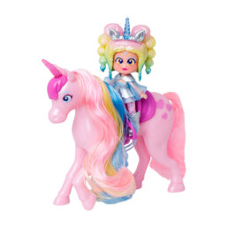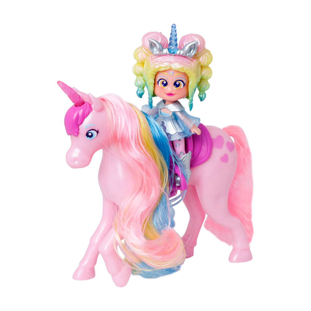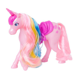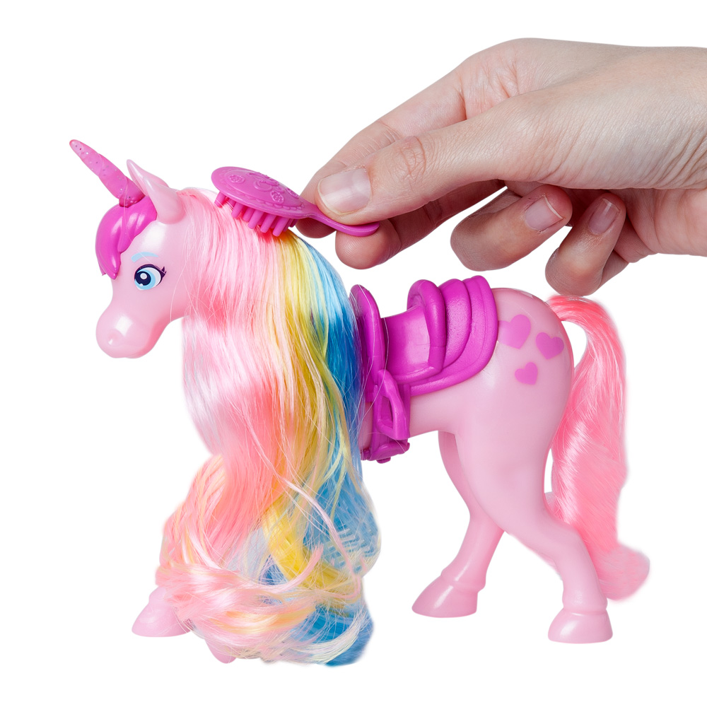 Unicornio Rainbow con pelo real y muñeca Iris. ¡Peina su cabello con el cepillo y prueba diferentes estilos!