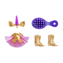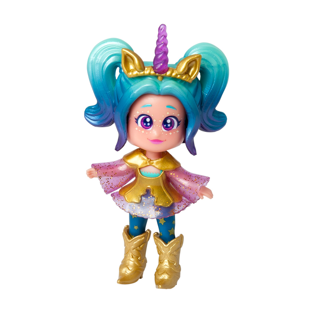 Unicornio Star con pelo real y muñeca Aurora. ¡Peina su cabello con el cepillo y prueba diferentes estilos!