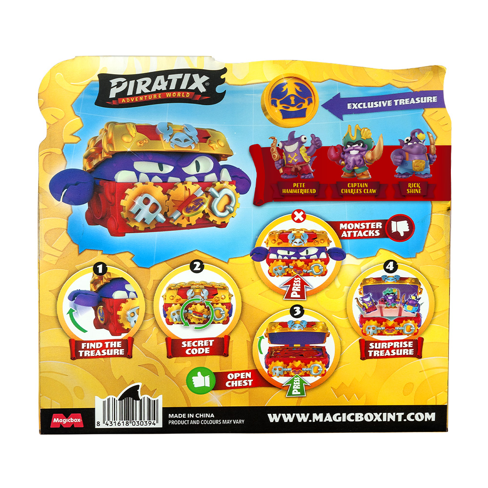Cofre del tesoro con un monstruo escondido en su interior. Resuelve la combinación secreta para liberar a la tripulación maldita.