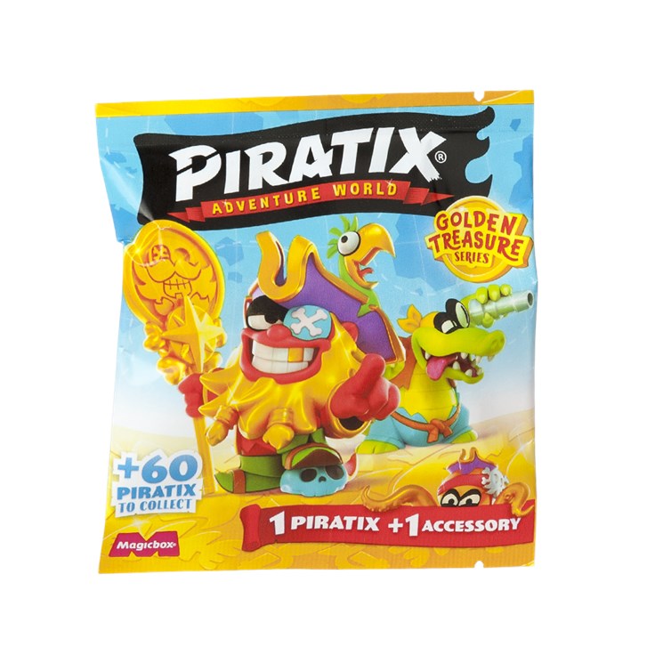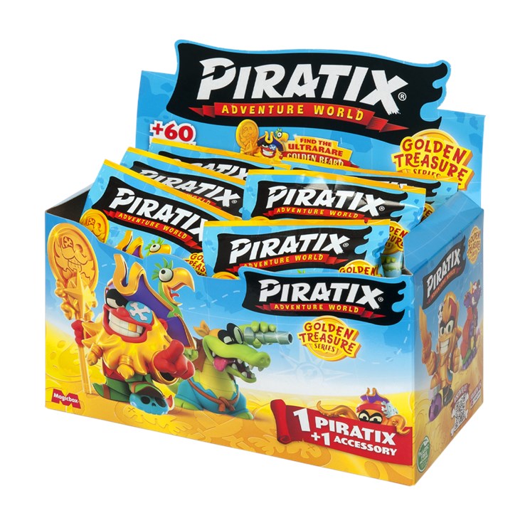 Más de 60 nuevos personajes piratas para coleccionar, incluidos los capitanes dorados y el ultra-raro Golden Beard, el único que viene con un tesoro dorado con efecto metalizado. Cada uno de los Piratix lleva un accesorio que se puede intercambiar por el de los otros Piratix.