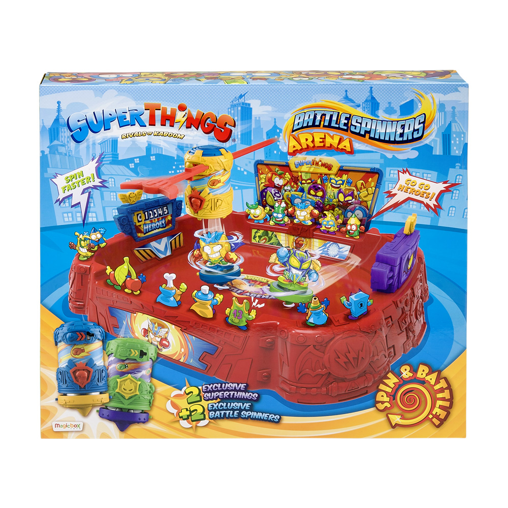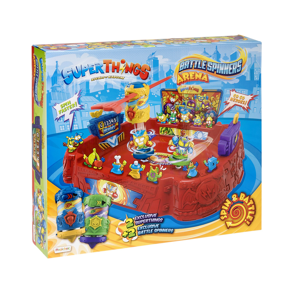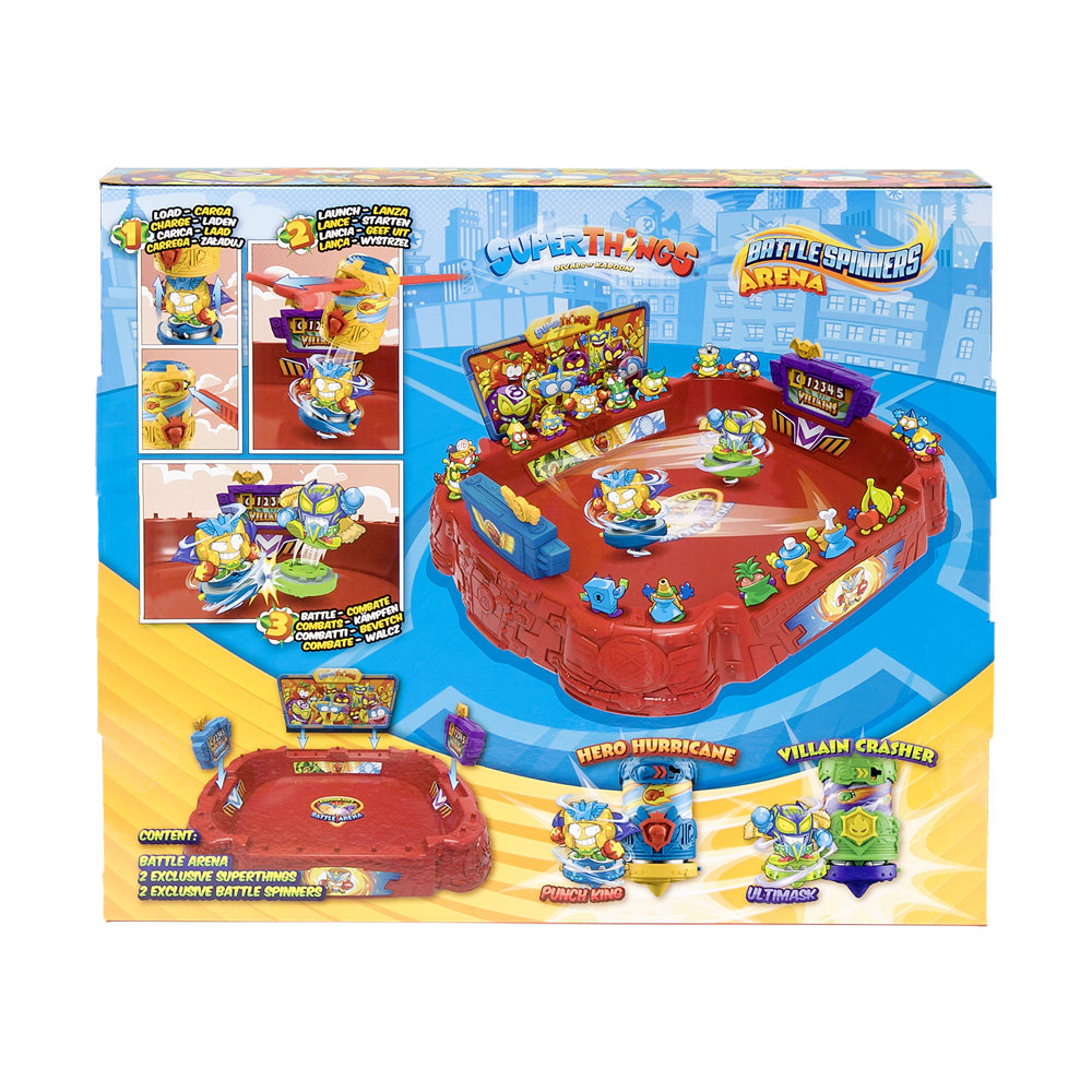 Descobre a Battle Arena, com 2 Battle Spinners e 2 SuperThings exclusivos. Lança os spinners para a arena e utiliza o quadro de classificação para decidir o vencedor!