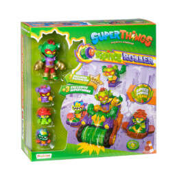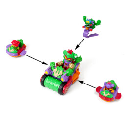 Descobre o Balloon Boxer, com dois veículos acopláveis, 3 SuperThings e 1 Kazoom Kid exclusivo. Dispara Superdiscs com os Blasterjets, ataca com o cilindro de picos e levanta voo com a mochila a jato!