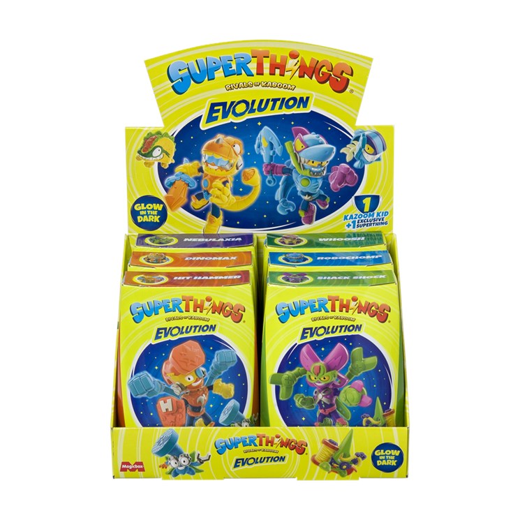 6 new glow-in-the-dark Kazoom Kids to collect with built-in armour. Each comes with their exclusive SuperThing and accessory which also glow in the dark.