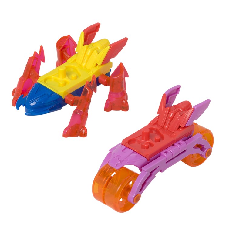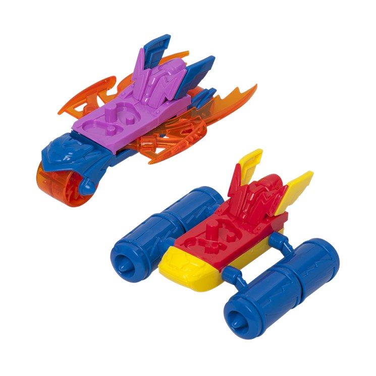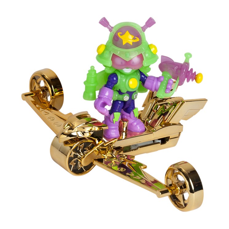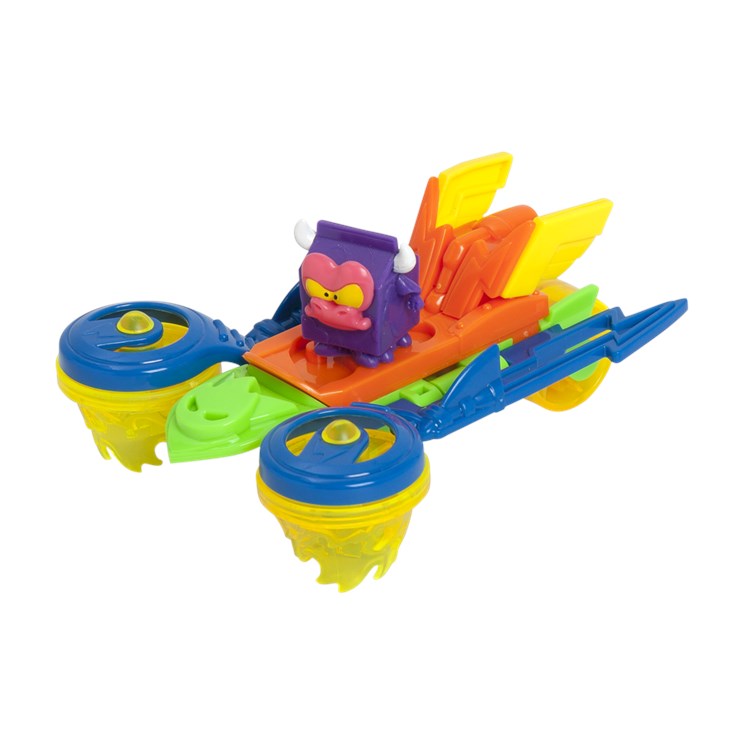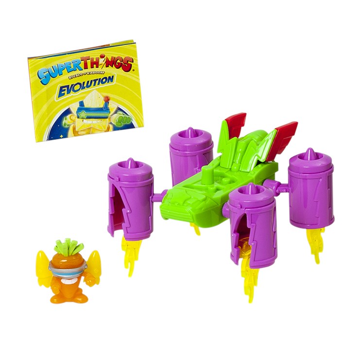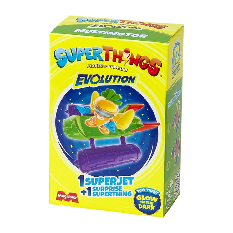 12 SuperJets to collect in various colours. Each Superjet transforms from land vehicle to flying aircraft with a single click. Also comes with a glow-in-the-dark SuperThing.